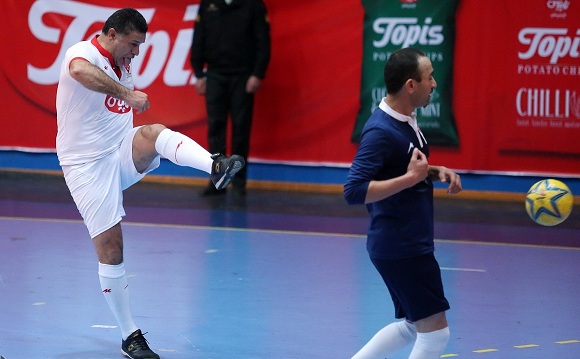 دیدار تیم های ستارگان فوتبال و هنر و پیشکسوتان مشهدی با نتیجه هشت بر پنج به نفع تیم ستارگان فوتبال و هنر به پایان رسید. در این عکس شکل صورت علی دایی برای شوت به سمت دروازه حریف جالب است.