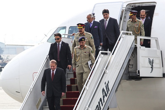 امروز سه شنبه نواز شریف نخست وزیر پاکستان و هیات همراه پس از ورود به فرودگاه مهرآباد مورد استقبال وزیر دفاع قرار گرفت.