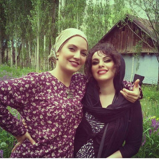 ژست صمیمی شبنم مقدمی و مونا فرجاد در پشت صحنه یک تئاتر