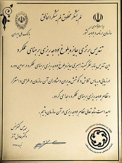 تندیس برنزی جایزه بلوغ بودجه ریزی بر مبنای عملکرد به بانک ملی ایران رسید