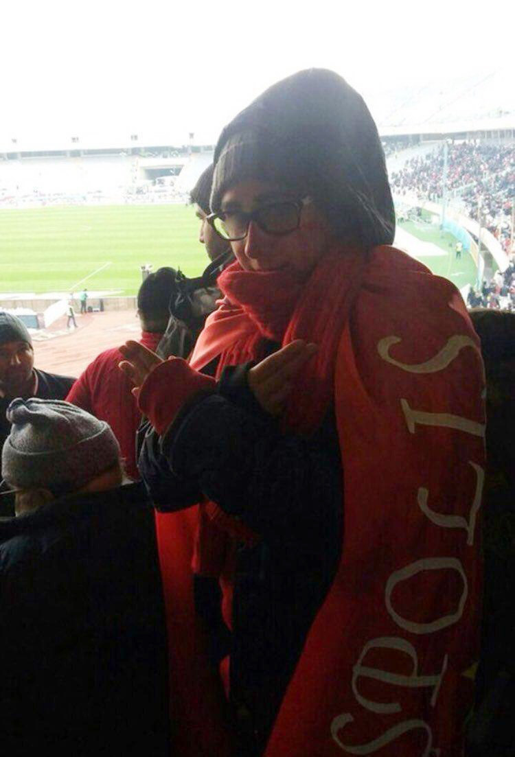 روزنو :حضور دختری با پوشش کلاه و عینک برای تماشای مسابقه پرسپولیس و سپاهان در ورزشگاه آزادی!
