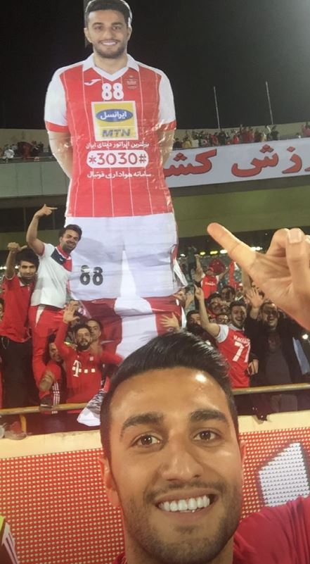 سیامک نعمتی که یکی از بهترین های این فصل پرسپولیس بود در روز بازی با سپیدرود و برگزاری جشن قهرمانی با ماکت بزرگی از عکسش در میان طرفداران عکس یادگاری گرفت.