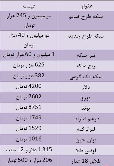 امروز در صرافی‌ها، هر قطعه سکه طرح قدیم دو میلیون و ۷۴۵ هزار تومان و سکه طرح جدید دو میلیون و ۴۰ هزار تومان به فروش رسید.