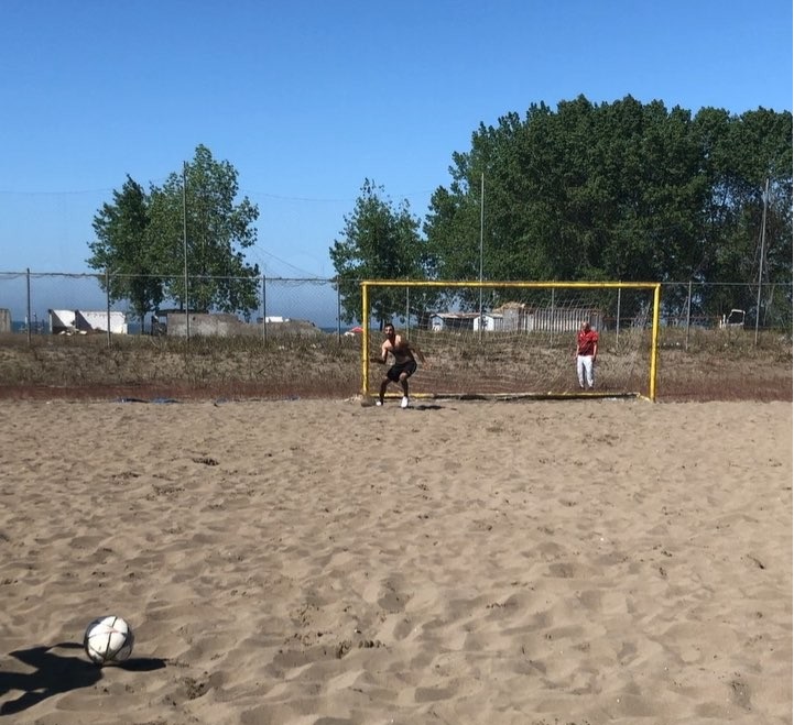 مکانی که درکشورنروژ بازی می کند درحالی دروازه بانی در فوتبال ساحلی را امتحان کرده که لباس بالا پوش بر تن ندارد!