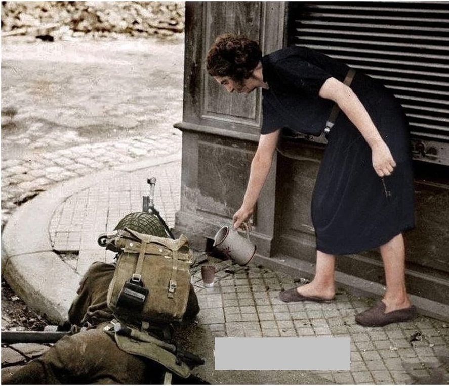 این عکس شاهکار، در سال 1944 گرفته شده است. جایی که این خانم فرانسوی در حال ریختن چای برای یک سرباز انگلیسی در نرماندی است !