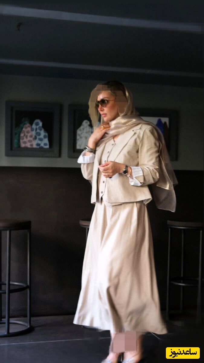 کت و دامن و جلیقه تابستانیِ کِرِم رنگ مینا مختاری همسر شیک‌پوش بهرام رادان+عکس